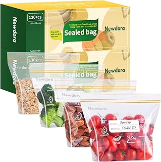Newdora Sacs Congélation,Sacs à Légumes,Lot de 120 Sacs de Rangement en Transparent, Fermeture Ultra-Zip, Hermétique pour Cuisine, Bijoux, Papeterie (15cm×16cm)