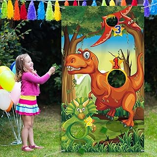 Fournitures de Fête de Dinosaures d'anniversaire Jeux de Lancement de Dinosaures avec 3 Sacs de Fèves Verts en Nylon Jeux de Sacs de Fèves Amusants pour Adolescents Faveur de Fête de Dinosaures