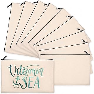 Souarts 5/10 PCS Toile Maquillage Sacs Toile Zipper Poche Sacs Étui à Crayons en Toile de Peinture Vierge Sacs à Fermeture Blanc DIY Etudiant Sac pour Stylo de Rangement de Papeterie
