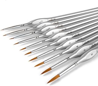 Lot de 10 pinceaux miniatures avec poignées triangulaires pour peinture artistique fine - Pour peinture artistique - Acrylique et clou, peinture à l'échelle - Pour visage, miniatures - Argenté