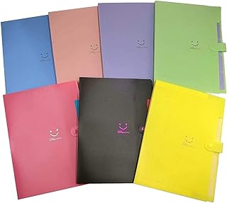 Lot de 7 porte-documents extensibles en plastique en accordéon, organiseur de documents pour bureau, école, format A4, avec 5 poches et fermeture à pression, multicolore
