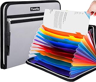 ABClife Extensible Pochettes pour Documents 13 Poches,A4 Trieur Document avec Fermeture à Glissière,Organisateur De Documents Porte-documents De Dossier D'accordéon avec Support De Poche Avant,Grise