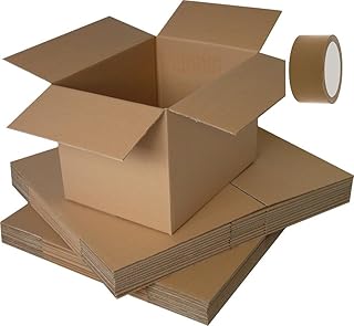 Lot de 4 boîtes en carton 60 x 40 x 40 cm avec 1 ruban adhésif Havane – Emballage carton double cannelure, poids garanti 1 kg par boîte pour expéditions/entrepôts/déménagements/boîtes neutres