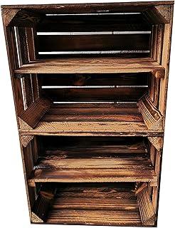 Caisses à fruits/caisses en bois flammées dans de nombreuses variantes – Idéal pour la construction de meubles ou pour le rangement – Très solides et stables (Lot de 4 / 2 x long sol).