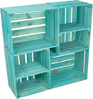 Lot de 4 caisses à fruits Johanna - Turquoise lasurée - Mélange de caisses à vin - Caisses en bois - Caisses à livres - Armoire à chaussures - Étagère à vin