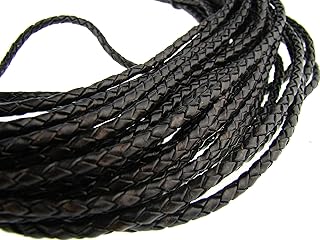 esnado Cordon en cuir tressé rond 4 mm Noir antique 2 m Longueur au choix