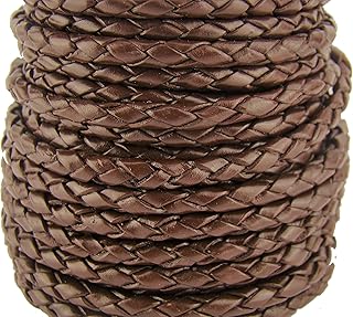 esnado Cordon en cuir tressé rond 4 mm Marron foncé vieilli 3 m Longueur au choix
