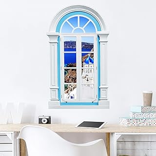 Bilderwelten Sticker Mural Mediterranean 150x100cm, Mediterranean View Over Santorini Window