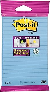 Post-it 6820S3 Super Sticky Lot de 12 blocs de 45 notes adhésives Ligné/bleu 102 x 152 mm