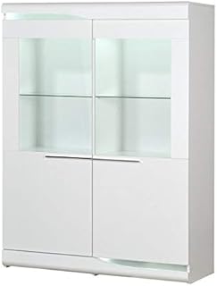 Tousmesmeubles Vitrine 2 Portes Blanc laqué Brillant à LEDs - PESMES - L 120 x l 46 x H 160 - Neuf