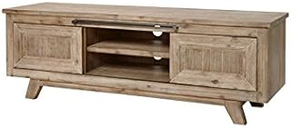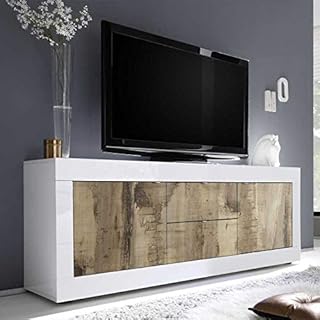 Tousmesmeubles Meuble TV 2 Portes 2 tiroirs Blanc/Planches Bois - Matera - L 210 x l 43 x H 66 - Neuf