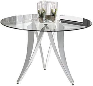 Tousmesmeubles Table de Repas Ronde Verre - AKNO - L 120 x l 120 x H 77 - Neuf