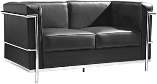 Tousmesmeubles Canapé 2 Places Cuir Noir - CORBS - L 131 x l 70 x H 67 - Neuf