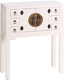 Tousmesmeubles Console 2 Portes, 6 tiroirs Blanc Meuble Chinois - Pekin - L 63 x l 26 x H 80 - Neuf