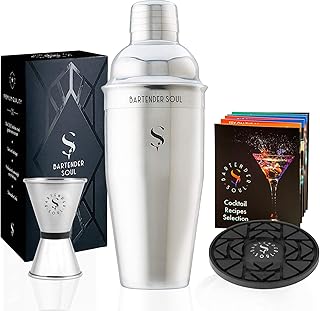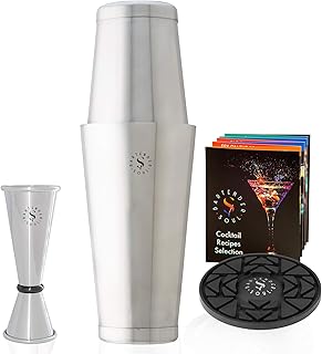 Ensemble de Shaker à Cocktail Professionnel - 750ml - 0,8mm - Avec Jigger de Mesure, Sous-Verre Polyvalent en Silicone et Guide de Recettes - Outils Robustes en Acier Inoxydable de Qualité Fiable