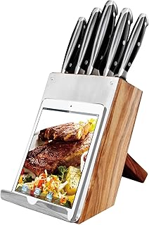 Bill.F Bloc de couteaux de cuisine en acier inoxydable avec support en acier inoxydable pour recettes et iPad