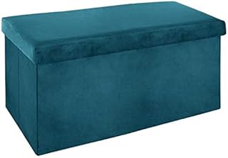 Paris Prix Atmosphera Créateur d'intérieur - Pouf Pliable en Velours Tess 76cm Bleu Canard