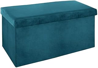Atmosphera - Pouf Pliant Double Bleu pétrole tess en Velours 76,6x38 cm 2 Places