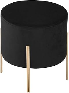 Atmosphera - Tabouret Velours Noir et Pied en métal D 34 x H 40 cm