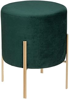 Atmosphera - Tabouret Velours Vert et Pied en métal D 34 x H 40 cm