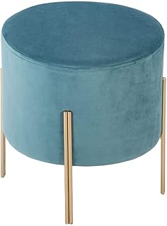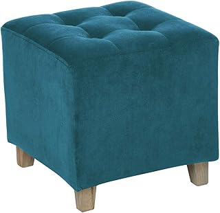 Atmosphera - Tabouret Pouf en Velours Bleu pétrole léandre
