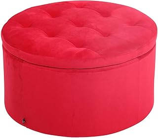CLP Pouf Repose-Pieds Evora Similicuir I Tissu I Velours I Tabouret Style Chesterfield I Tabouret Coffre 48L Capacité De Stockage, Couleurs:Rouge, matière:Velours