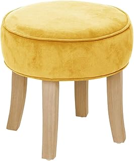 Tabouret Velours - Adriel - D 35 x H 35 cm - Moutarde