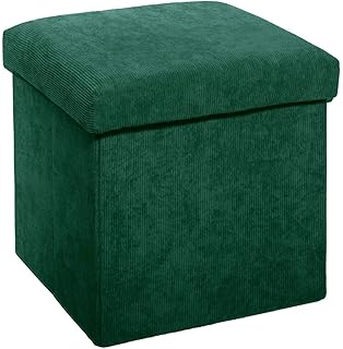 Atmosphera - 2 en 1 Pouf Pliant et Coffre de Rangement Velours côtelé Vert H 38 cm