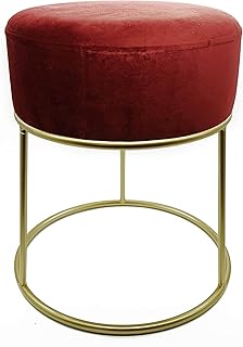 CREOFANT Tabouret rembourré en velours avec structure en métal - Tabouret rembourré - Tabouret rembourré - Housse en velours - Tabouret de coiffeuse - Banc (bordeaux - doré)