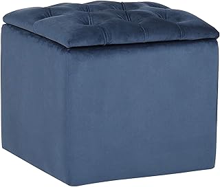 CLP Pouf Repose-Pieds Eilat en Tissu Ou Velours I Tabouret Style Chesterfield I Tabouret Coffre I Repose-Pieds Chic, Couleurs:Bleu, matière:Velours