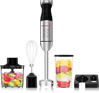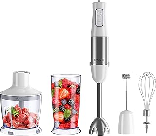 homgeek Mixeur Plongeant 1000W, 5 en 1 Mixeur à Main Multifonction avec 6 Vitesses de Réglables, Mousseur à Lait, Fouet et Hachoir, Tasse à Mesurer 600ml, Hachoir 500ml