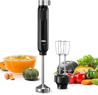 Mixeur Plongeant 2 en 1 TIBEK, Mixeur Plongeur Multifonction avec Vitesses Réglables et Verrous de Sécurité, Mixeur Électrique à Main Ultra-légère, Fouet et Hachoir en Acier Inoxydable, 400W