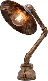 MYJHUIY Loft Rétro Edison Vintage Industriel Socle en Métal Conduite D'eau Lampes de Table Antique Fer Lampe de Bureau Lampe à Poser pour Chevet Bar Salon Chambre Lampe(Ampoule incluse) Bronze brun