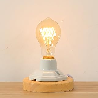Injuicy Loft Industriel Socle en Ceramica Lampes de Table en Céramique Antico Edison Bois E27 Lampe de Bureau Antique Lampe à Poser Chevet Café Bar Salon Chambre Lampe de Nuit de Studio (Bois)