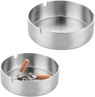 PEAK-EU 2 Pcs Cendrier Inoxydable Incassable Pour IntéRieur Et ExtéRieur Avec pour Cigarettes ou Cigares (Argent)