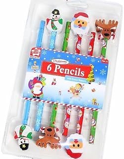 Crayons de Noël gomme en – Lot de 6 mixtes – 2 x Père Noël, renne, Stocking, bonhomme de neige et arbre de Noël par Henbrandt 2-Pack multicolore