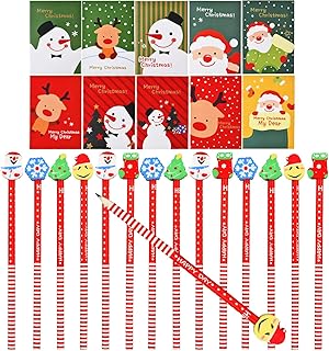 15 Pièces Crayons avec Gommes et 10 Pièces Mini Bloc-Notes de Noël Carnet de Notes de Bonhomme de Neige Père Noël Wapiti pour Prix du Jeu de Noël Récompenses en Classe