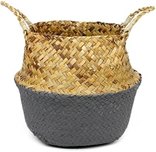 SODIAL Rotin panier paille panier jardin pliable fleur pot suspendus panier de rangement en osier tisse Seagrass panier rotin fleur vase Organisation-Taille S-Couleur gris