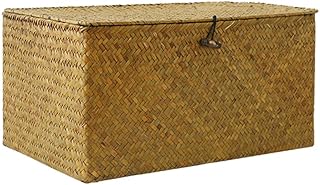 Garneck Panier de Rangement en Rotin avec Couvercle Panier D'algues en Paille Panier de Rangement Tissé à La Main Paniers à Linge Divers Organisateur pour Le Lavage des Vêtements Taille