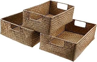 YARNOW 4 Pièces Seagrass Panier De Rangement À La Main en Rotin Plateau Paniers Accueil Bacs De Rangement Paniers avec Poignée (4 Tailles)
