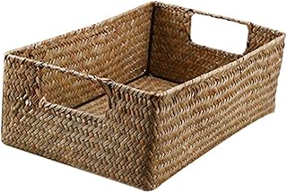 YARNOW Seagrass Panier De Rangement À La Main en Rotin Plateau Paniers Accueil Bacs De Rangement Paniers avec Poignée (M)
