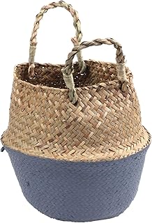 LQMILK Panier tressé, Panier de Rangement Naturel dherbe de mer Pot de Panier de Plantes tissé, Panier de Ventre Pliable en Osier de Seagrass avec poignée, rotin de Panier en Osier pour Le Linge
