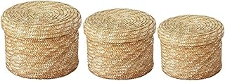 Panier de rangement en rotin LIOOBO 3pcs Panier de rangement tissé à la main en Seagrass avec couvercle pour étagères et bacs de rangement à la maison - Taille S, M, L