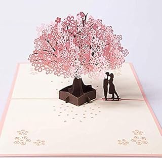 Pop Up Carte 3D, Gagawin Carte de Voeux Anniversaire Invite Mariage 3D Arbre Sakura Carte Amour pour Fete Saint Valentin Enveloppe Noel
