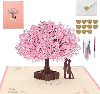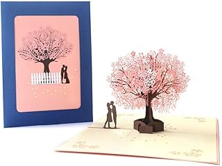 Vicloon Carte De Saint Valentin,Carte Anniversaire Marriage,Carte 3D,Carte Pop Up,Carte Mariage 3D avec Enveloppe Carte Sakura Couple Romantique pour Saint-Valentin Anniversaire Noël Nouvel An