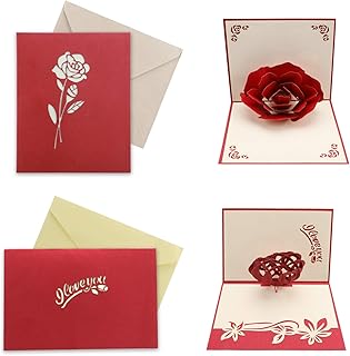 HOWAF 2 Pack Rose et Amour Carte, 3D Carte Pop Up Carte de Voeux, Mariage Cartes Anniversaire Saint Valentin Carte Origami Cadeau pour Anniversaire, fête des mères, Mariage, Saint Valentin