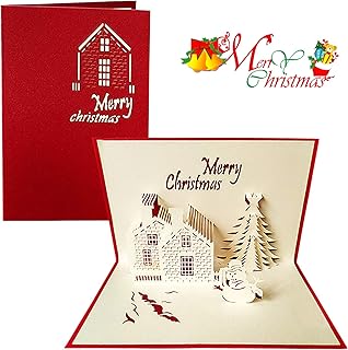 JUN-H Pop Up 3D Carte De Voeux De Noël Sapin Et Renne Pop Up Carte pour Cartes De Noël Carte D'anniversaire Du Nouvel An Pour La Saint Valentin