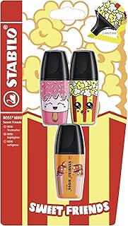 STABILO BOSS Mini Sweet Friends Lot de 3 surligneurs Vert/jaune/bleu