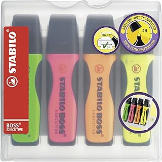 Stabilo Boss Executive Lot de 4 surligneurs haut de gamme Vert/rose/orange/jaune