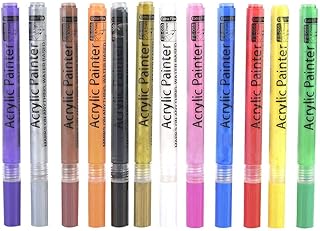 Morfone Marqueurs à peinture acrylique à base d'eau 12 couleurs Stylos pour peinture sur roche, toile, album photo, bricolage, projet scolaire, verre, céramique, bois,toile,métal (pointe moyenne)